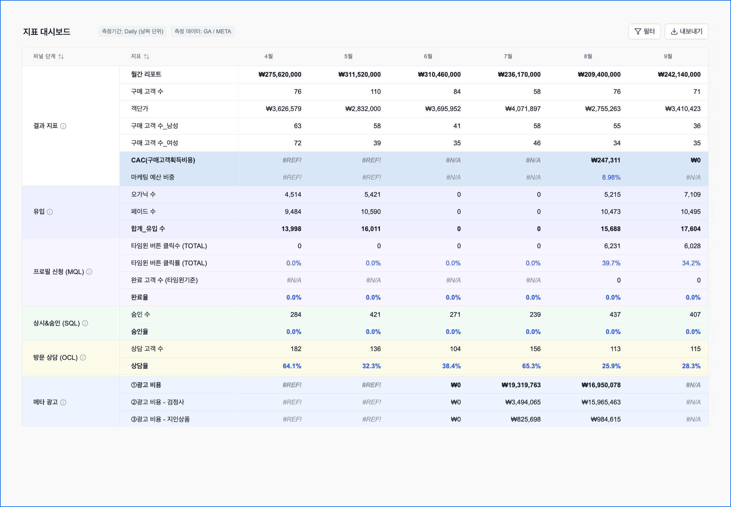 우리회사 업종을 고려한 핵심 지표 설계와 데이터 연결